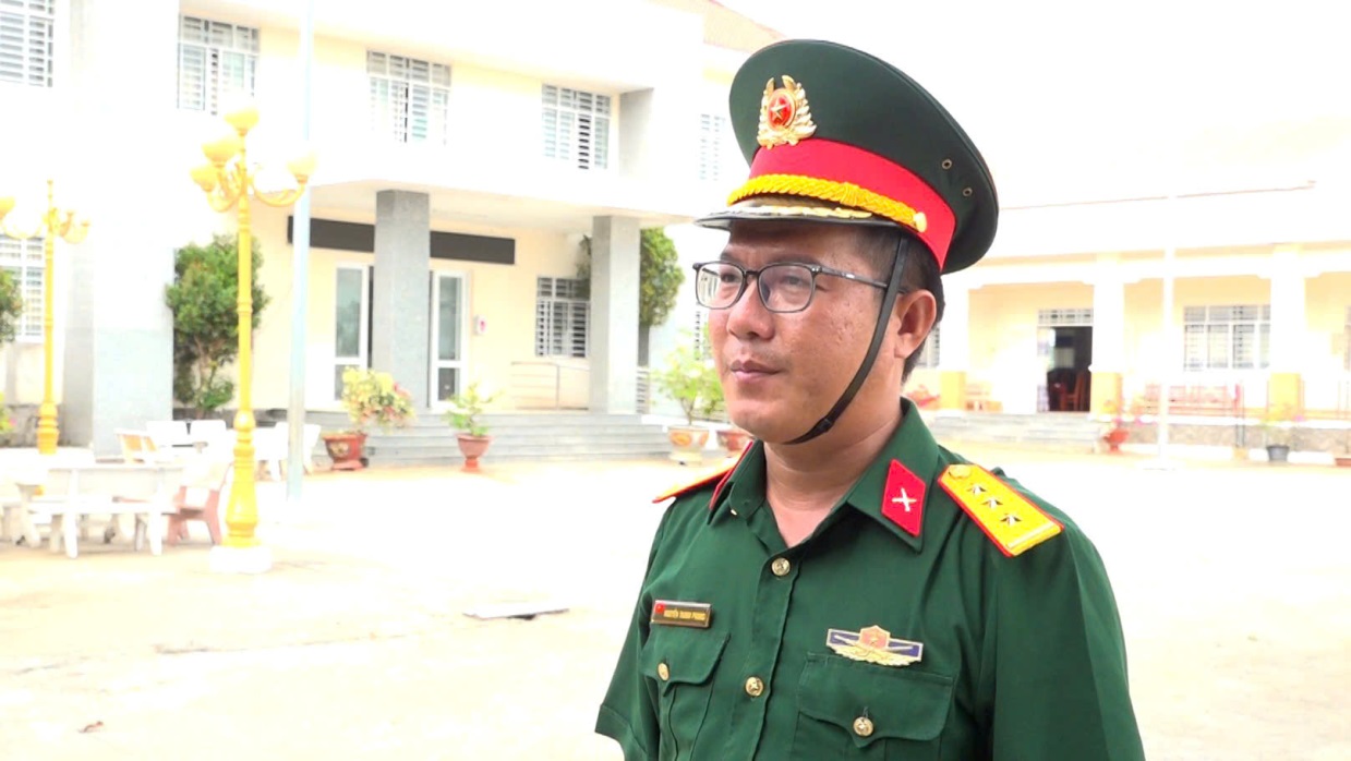 Thượng úy Nguyễn Phước Luân, Phó Chỉ huy trưởng Ban CHQS xã An Phú thông tin các hoạt động động viên thanh niên trước ngày nhập ngũ