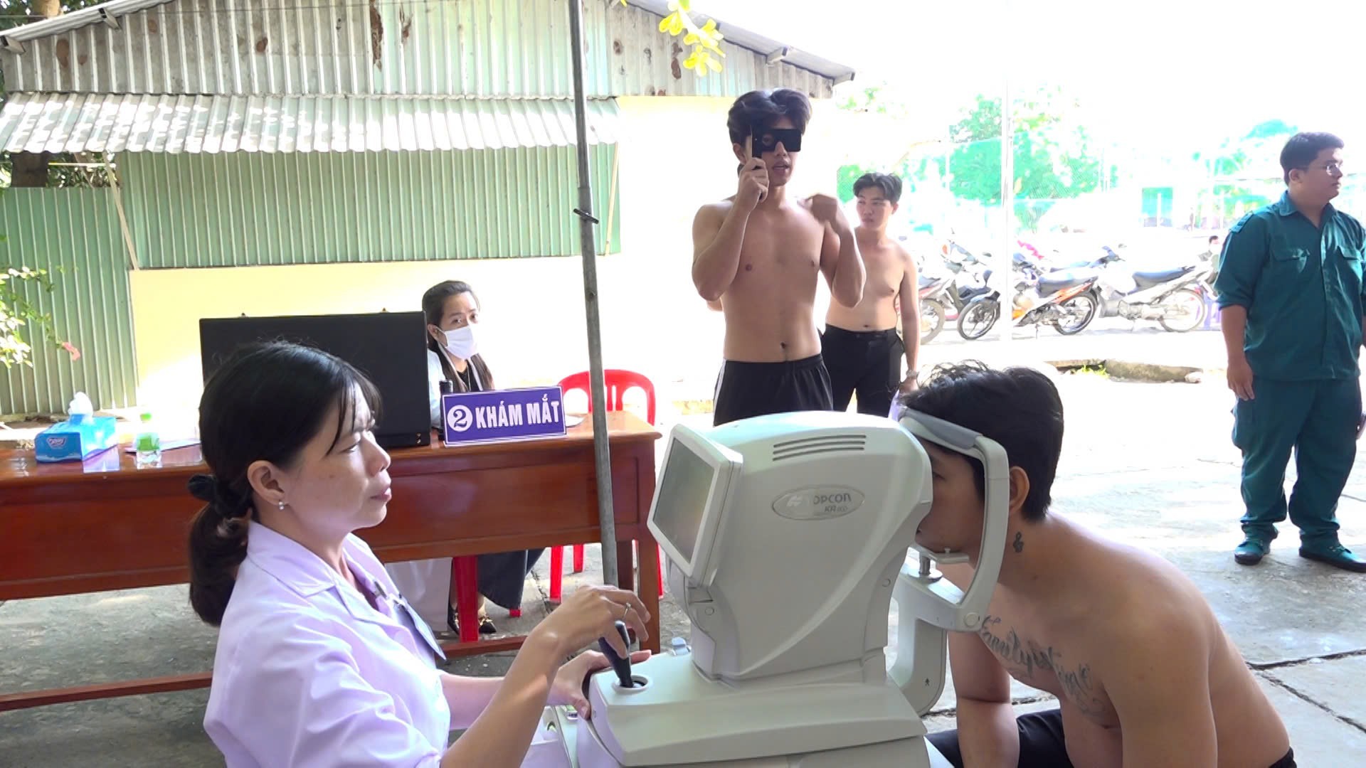 Tiến hành khám mắt cho thanh niên