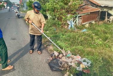 Hội Cựu Chiến binh xã Quốc Thái thu gom rác thải bảo vệ môi trường