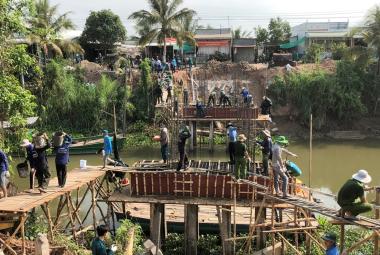 Phú Hữu huy động lực lượng tham gia đổ bê tông đà ngang cầu tuyến dân cư Bắc Cỏ Lau
