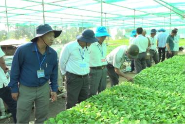 Phó Chủ tịch Hội Nông dân tỉnh An Giang tham quan mô hình ươm cây giống xã Quốc Thái