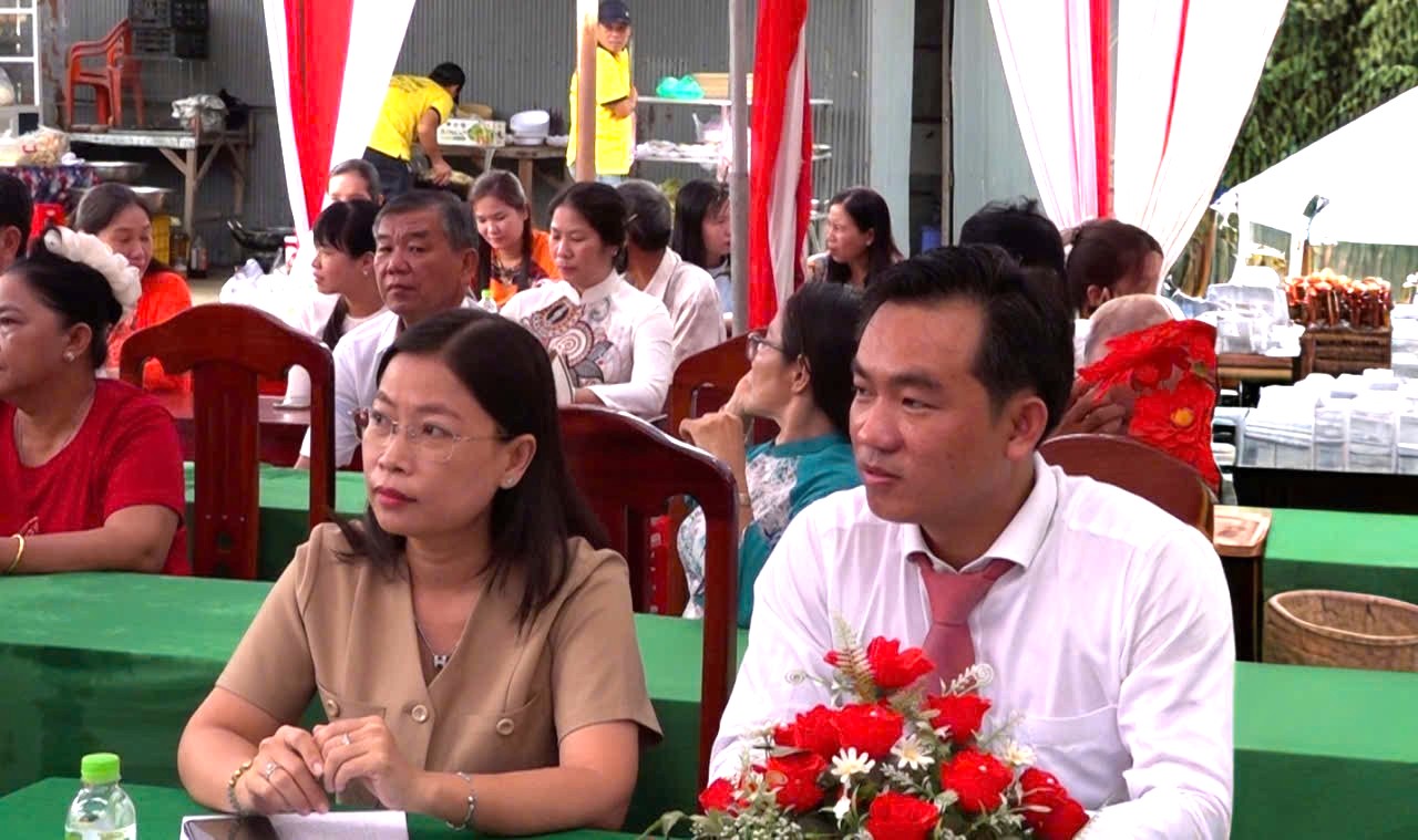 Bà Huỳnh Thị Mỹ Châu, Ủy viên Thường vụ, Chủ nhiệm Ủy ban Kiểm tra Đảng ủy xã An Phú và bác sĩ Nguyễn Văn Sum, Phụ trách Trạm Y tế xã An Phú tại buổi họp mặt