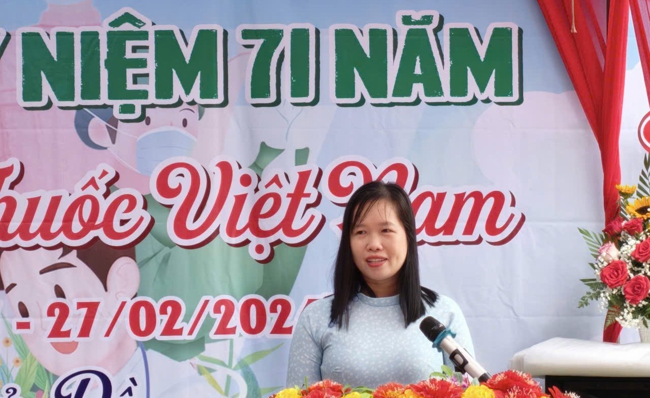 Bác sĩ Nguyễn Văn Sum, phụ trách Trạm Y tế xã An Phú phát biểu tại buổi họp mặt ngày Thầy thuốc Việt Nam 27/2