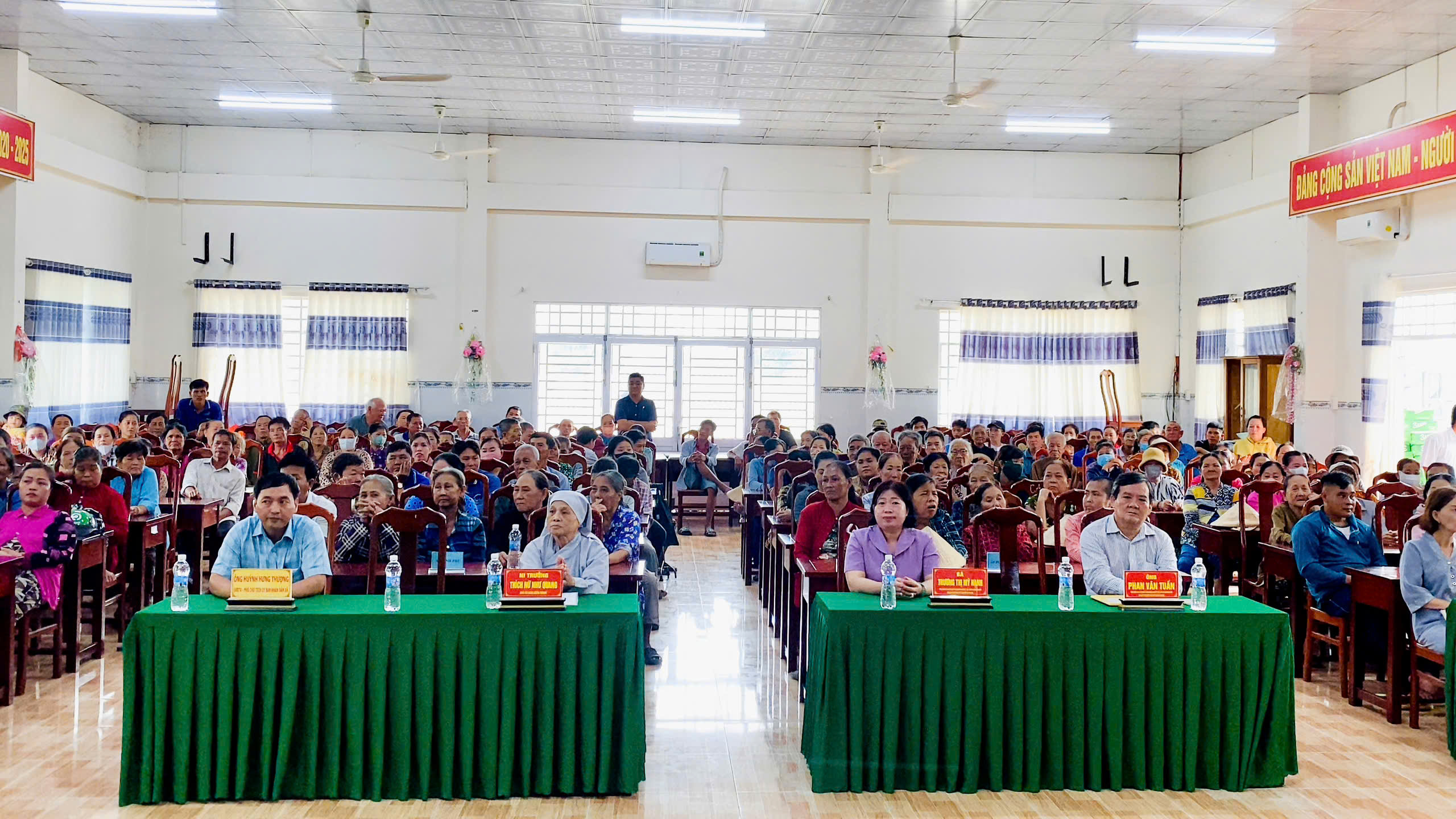 Dịp này, đại diện Hội Bảo trợ người khuyết tật, bệnh nhân nghèo và bảo vệ quyền trẻ em tỉnh, lãnh đạo địa phương và đơn vị hỗ trợ đã trao 200 phần quà tận tay hộ nghèo, cận nghèo, hộ có hoàn cảnh khó khăn và người khuyết tật, mỗi phần trị giá 250.000 đồng gồm: gạo, mì và nước tương, tổng đợt trao quà trị giá 50 triệu đồng.