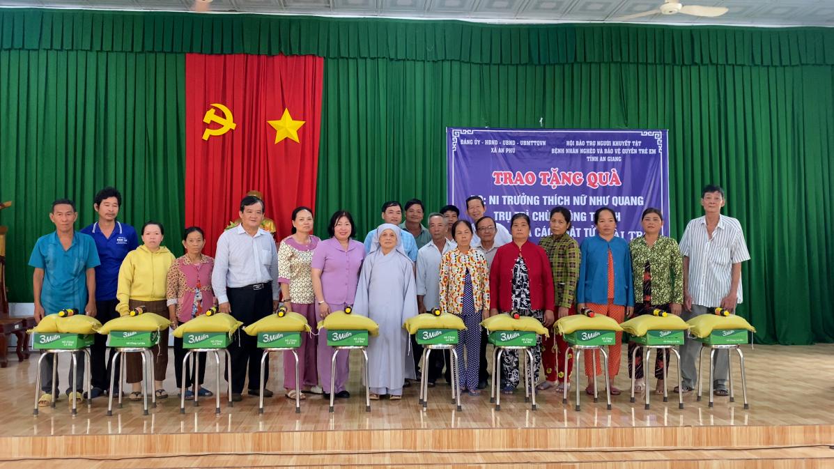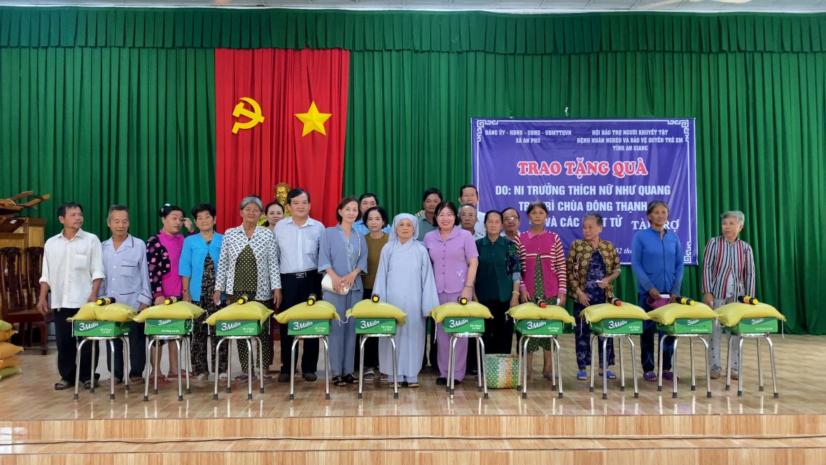 Được sự hỗ trợ của Ni trưởng Thích nữ Như Quang, trụ trì Chùa Đông Thạnh (phường Long Xuyên) và các phật tử, sáng 2/10, Đảng ủy, HĐND, UBND, UBMTTQVN xã An Phú phối hợp với Hội Bảo trợ người khuyết tật, bệnh nhân nghèo và bảo vệ quyền trẻ em tỉnh An Giang tổ chức trao quà cho hộ nghèo, cận nghèo, hộ có hoàn cảnh khó khăn và người khuyết tật trên địa bàn.