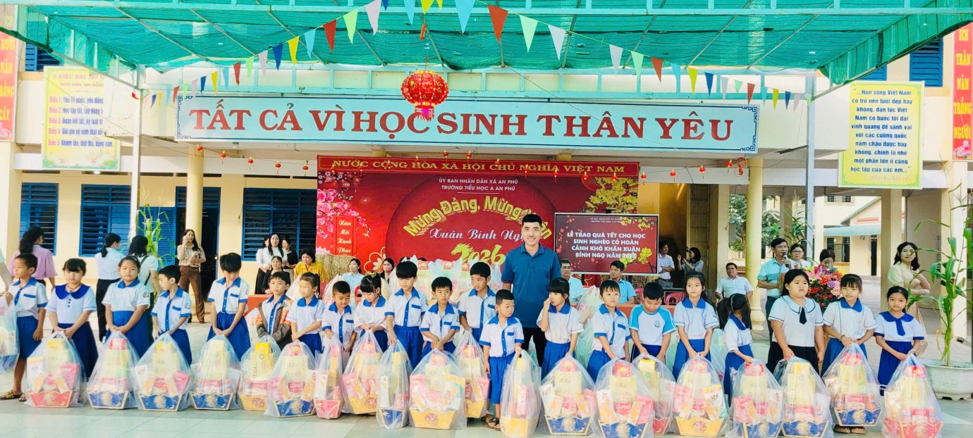 Sáng 06/02/2026, Trường Tiểu học A An Phú tổ chức Chương trình trao quà tết cho học sinh nghèo, học sinh có hoàn cảnh khó khăn nhân dịp Xuân mới, nhằm động viên tinh thần và tiếp thêm động lực cho các em vươn lên trong học tập.