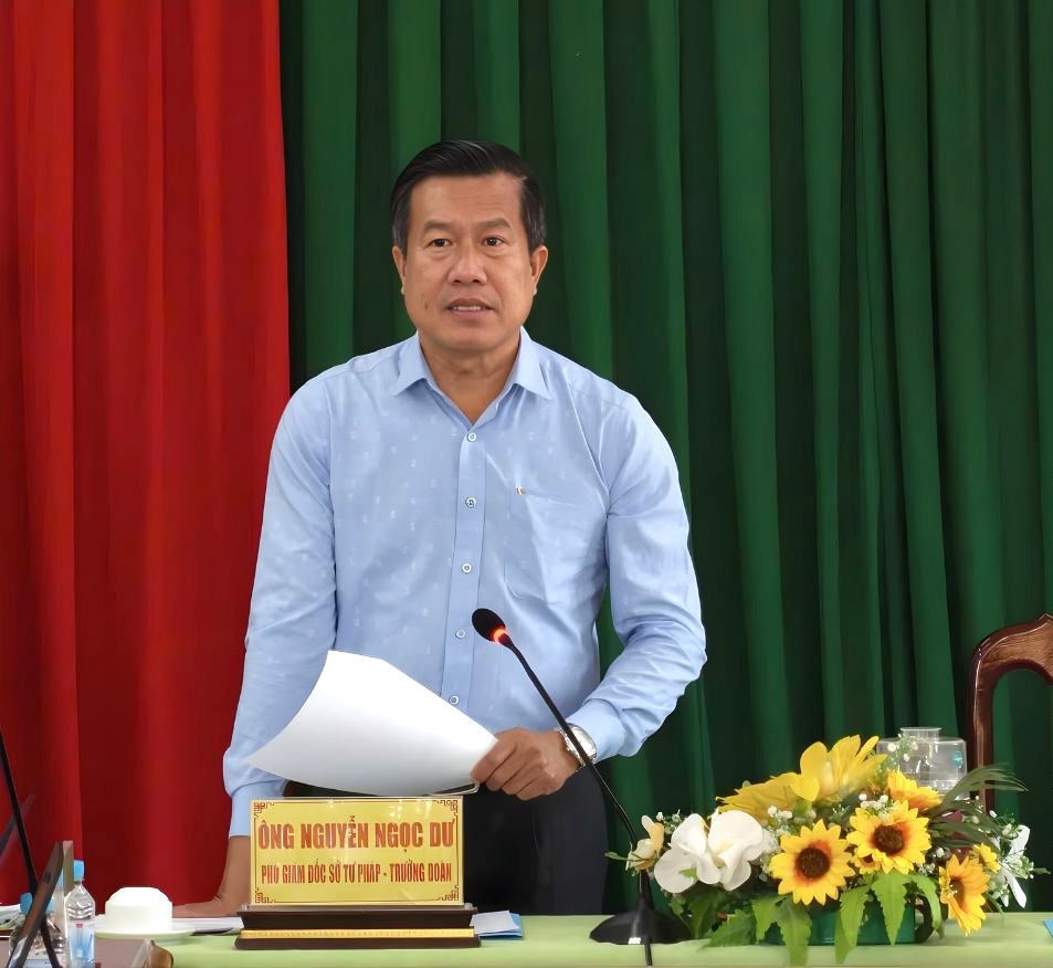 Ông Nguyễn Ngọc Dư, Phó giám đốc Sở Tư pháp An Giang phát biểu kết luận buổi làm việc
