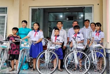 Trao tặng 5 chiếc xe đạp và 600 quyển tập cho học sinh nghèo Vĩnh Hội Đông