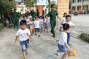 Thiếu nhi Trường Mẫu giáo Vĩnh Hội Đông giao lưu cùng Bộ đội Biên phòng
