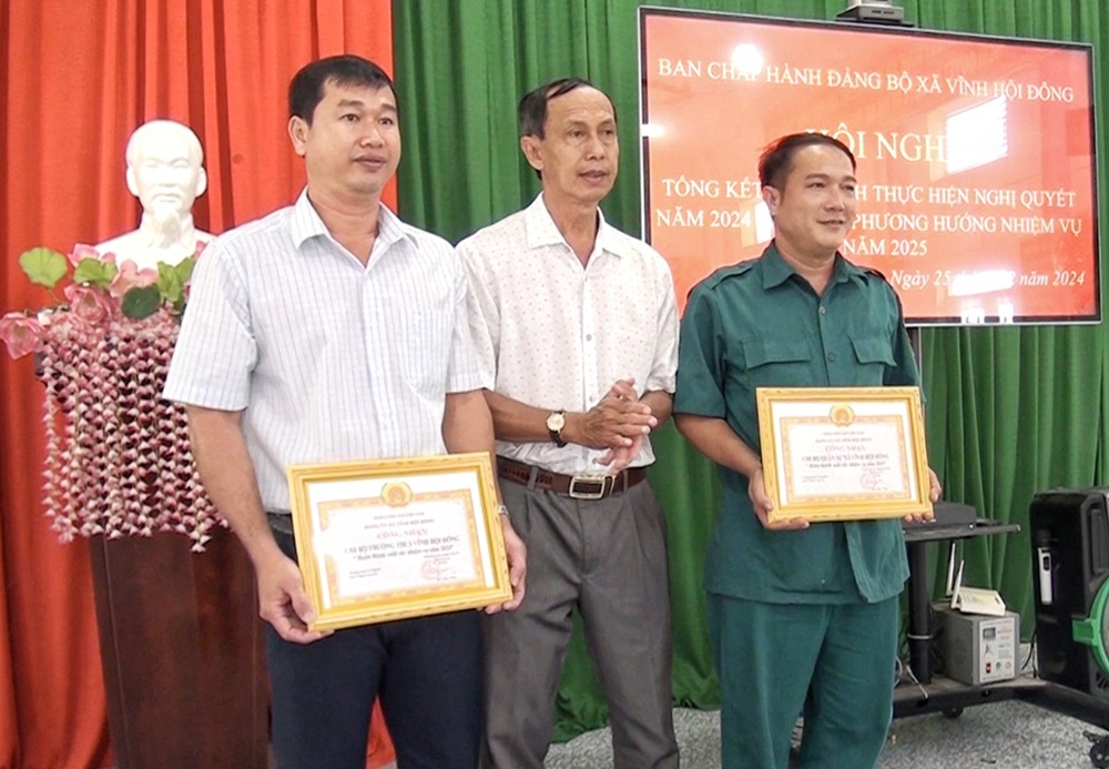Dịp này, Đảng ủy xã Vĩnh Hội Đông cũng đã trao Quyết định khen thưởng cho 2 tập thể và 38 cá nhân hoàn thành xuất sắc nhiệm vụ năm 2024