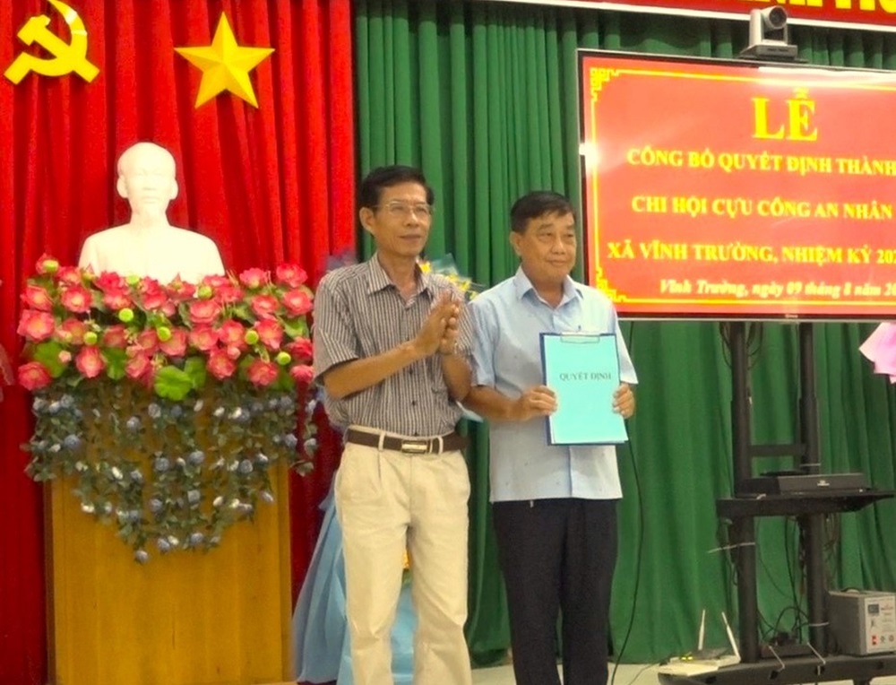 Chiều 9/8, Hội Cựu Công an nhân dân huyện An Phú phối hợp với Ủy ban nhân dân xã Vĩnh Trường tổ chức lễ công bố Quyết định thành lập Chi hội Cựu Công an nhân dân xã; đến dự có ông Nguyễn Xuân Hải, Chủ tịch Hội Cựu Công an nhân dân huyện.
