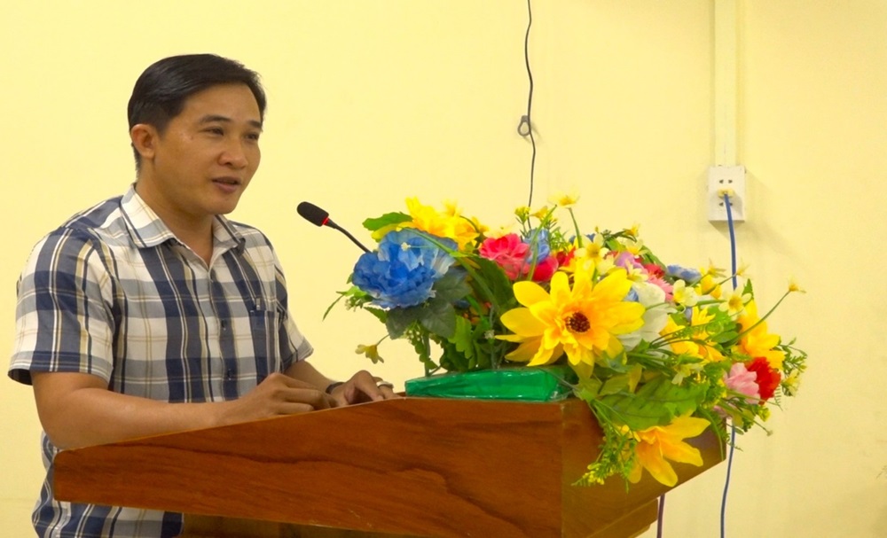 Ông Huỳnh Thanh Tâm, Phó Bí thư Đảng ủy xã phát biểu chúc mừng Chi hội Cựu Công an nhân dân xã