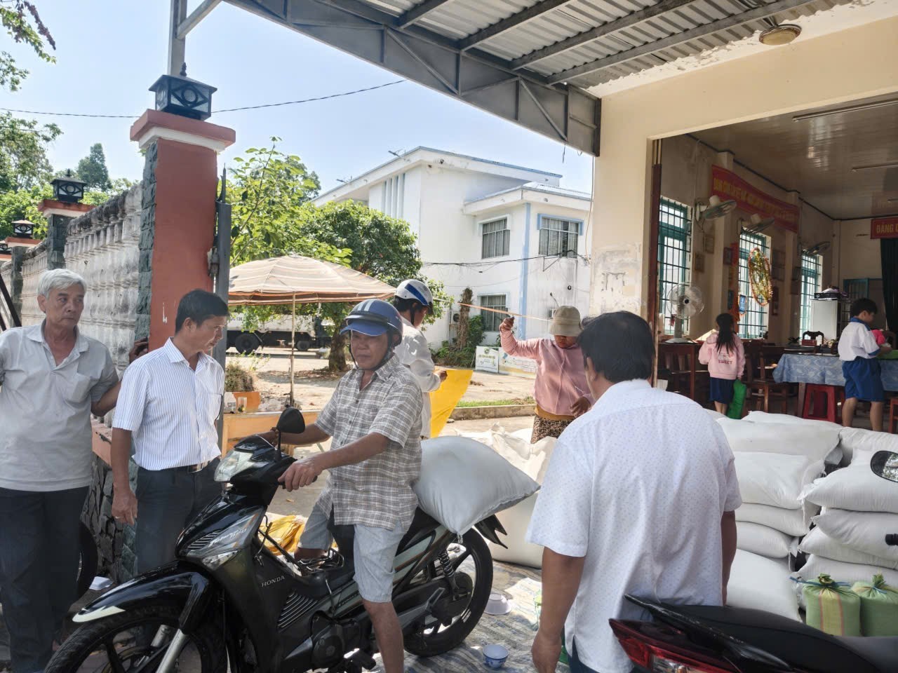 Ban nhân dân ấp Vĩnh An cấp phát gạo dự trữ quốc gia cho người dân