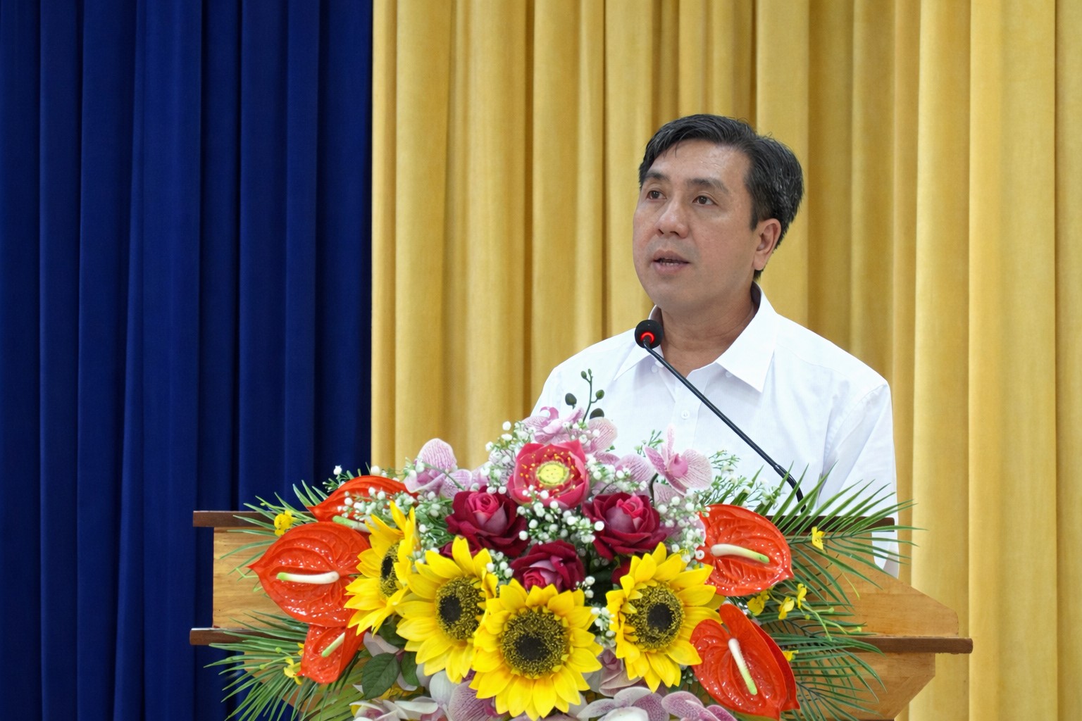Đồng chí Nguyễn Xuân Tiến, Phó Bí thư Đảng ủy, Chủ tịch UBND phát biểu chỉ đạo buổi lễ