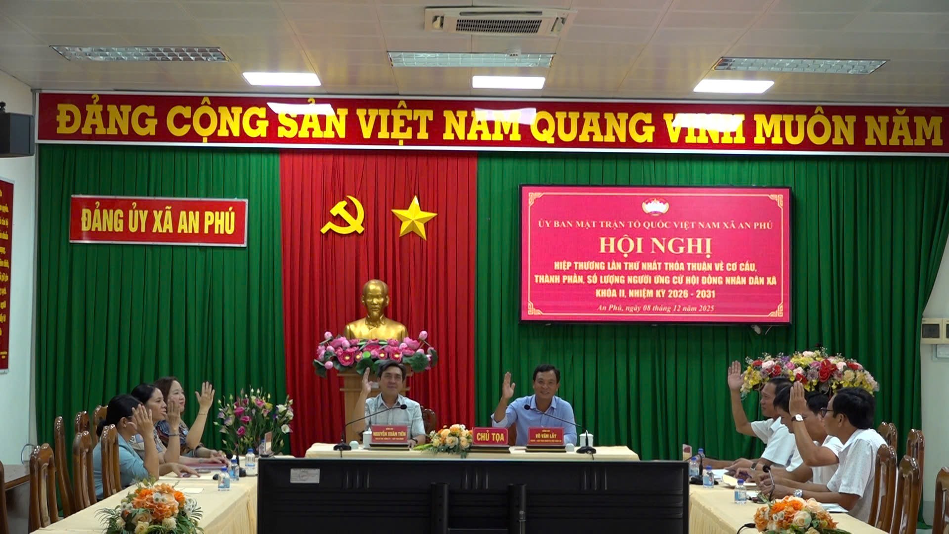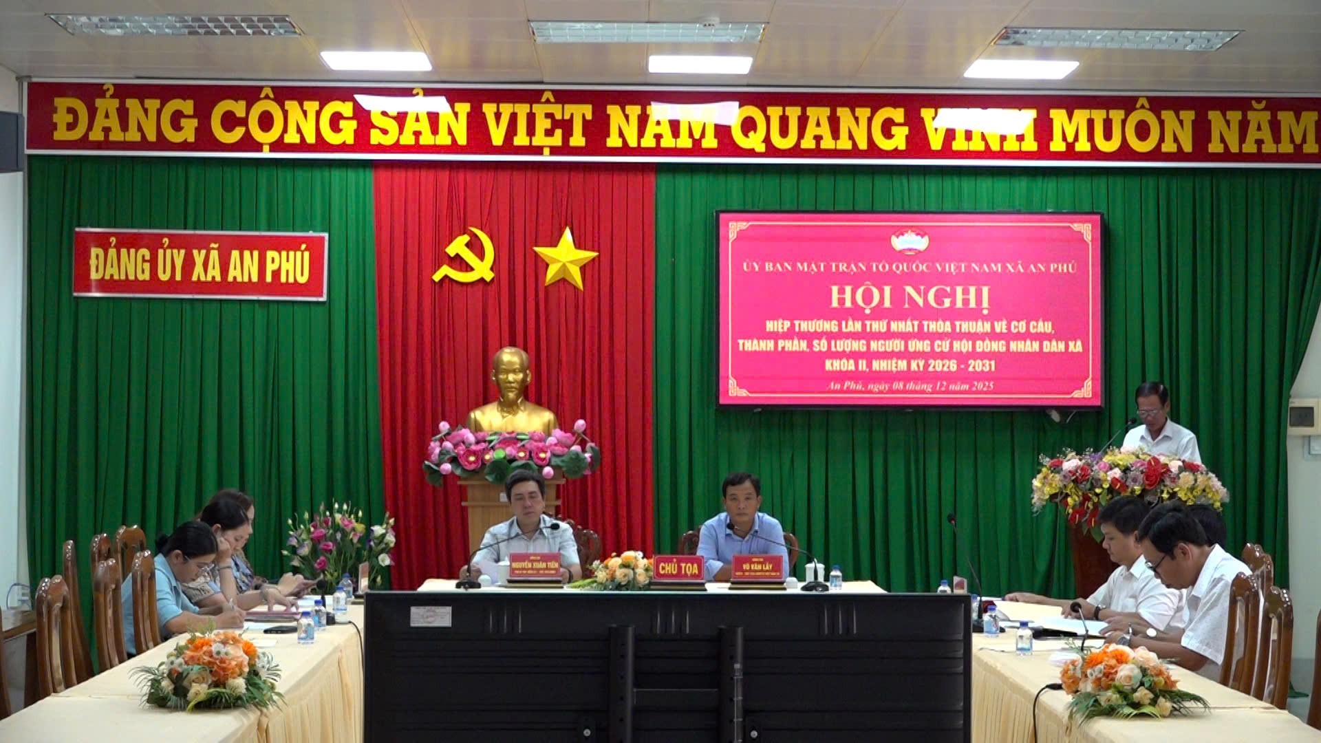 Chiều 8/12, Ủy ban Mặt trận Tổ quốc(UBMTTQ) Việt Nam xã An Phú tổ chức Hội nghị hiệp thương lần thứ nhất bầu cử Hội đồng Nhân dân(HĐND) xã khóa II, nhiệm kỳ 2026 – 2031; tham dự hội nghị có ông Nguyễn Xuân Tiến, Phó Bí thư Đảng ủy, Chủ tịch UBND, Chủ tịch Ủy ban bầu cử xã; ông Võ Văn Lẫy, Ủy viên Thường vụ, Chủ tịch UBMTTQ Việt Nam xã; bà Trần Thị Hương, Ủy viên Thường vụ, Phó chủ tịch HĐND, Phó Chủ tịch Ủy ban bầu cử xã; cùng tổ chức thành viên của UBMTTQ Việt Nam xã.
