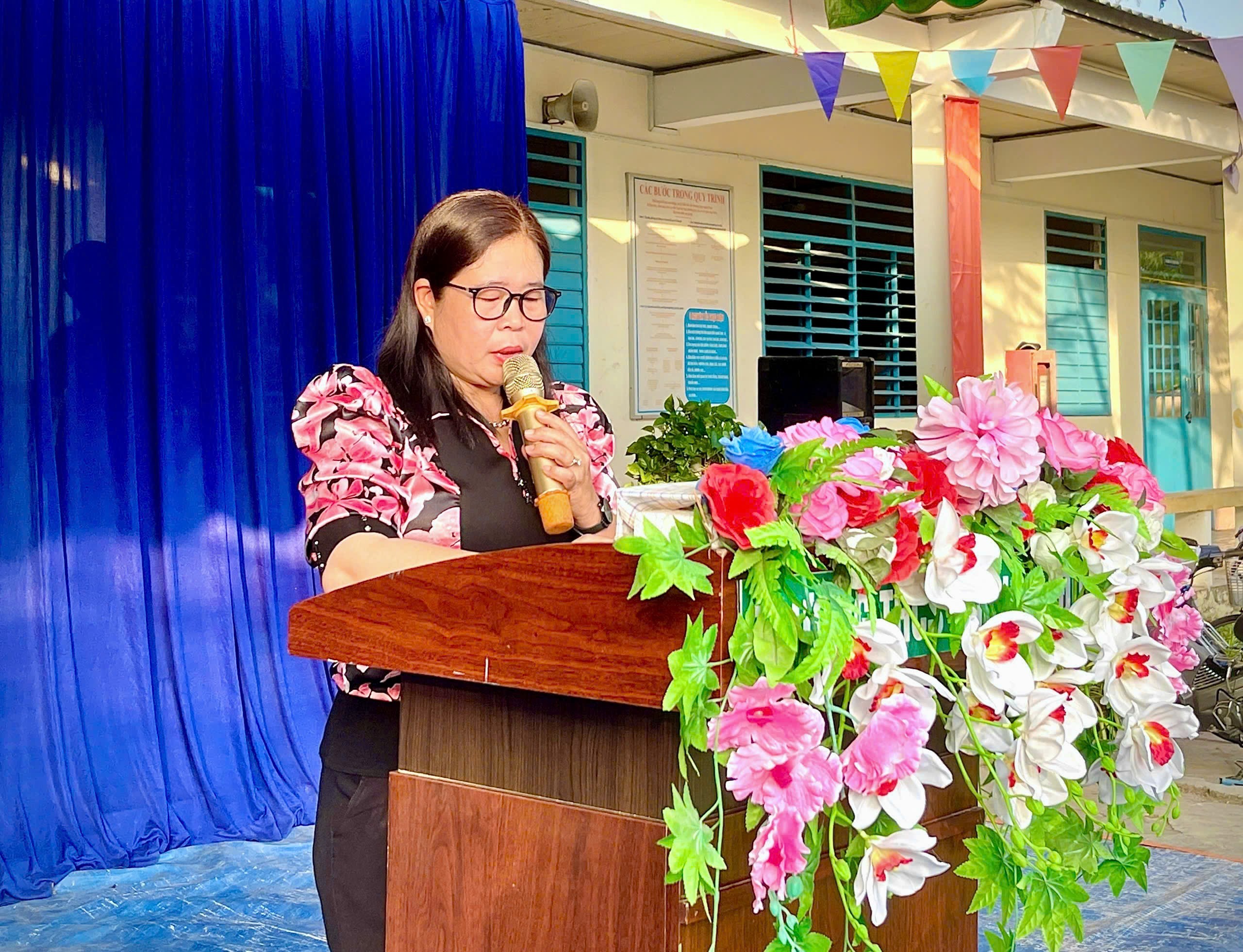 Bà Nguyễn Trung Hạnh, Ủy viên Ban Thường vụ Đảng ủy, Phó Chủ tịch UBND xã phát biểu tại buổi lễ