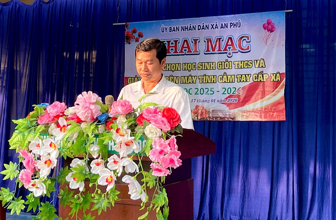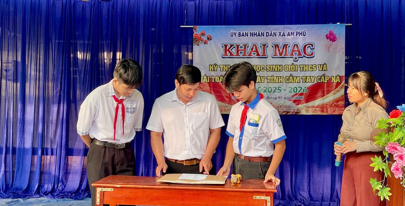 Sáng 17/01/2026, Trường THCS Vĩnh Hội Đông, xã An Phú tổ chức Kỳ thi học sinh giỏi THCS và Giải Toán trên máy tính cầm tay, năm học 2025 – 2026; bà Nguyễn Trung Hạnh, Ủy viên Ban Thường vụ Đảng ủy, Phó Chủ tịch UBND xã; đại diện lãnh đạo các phòng ban xã đến dự lễ khai mạc kỳ thi.