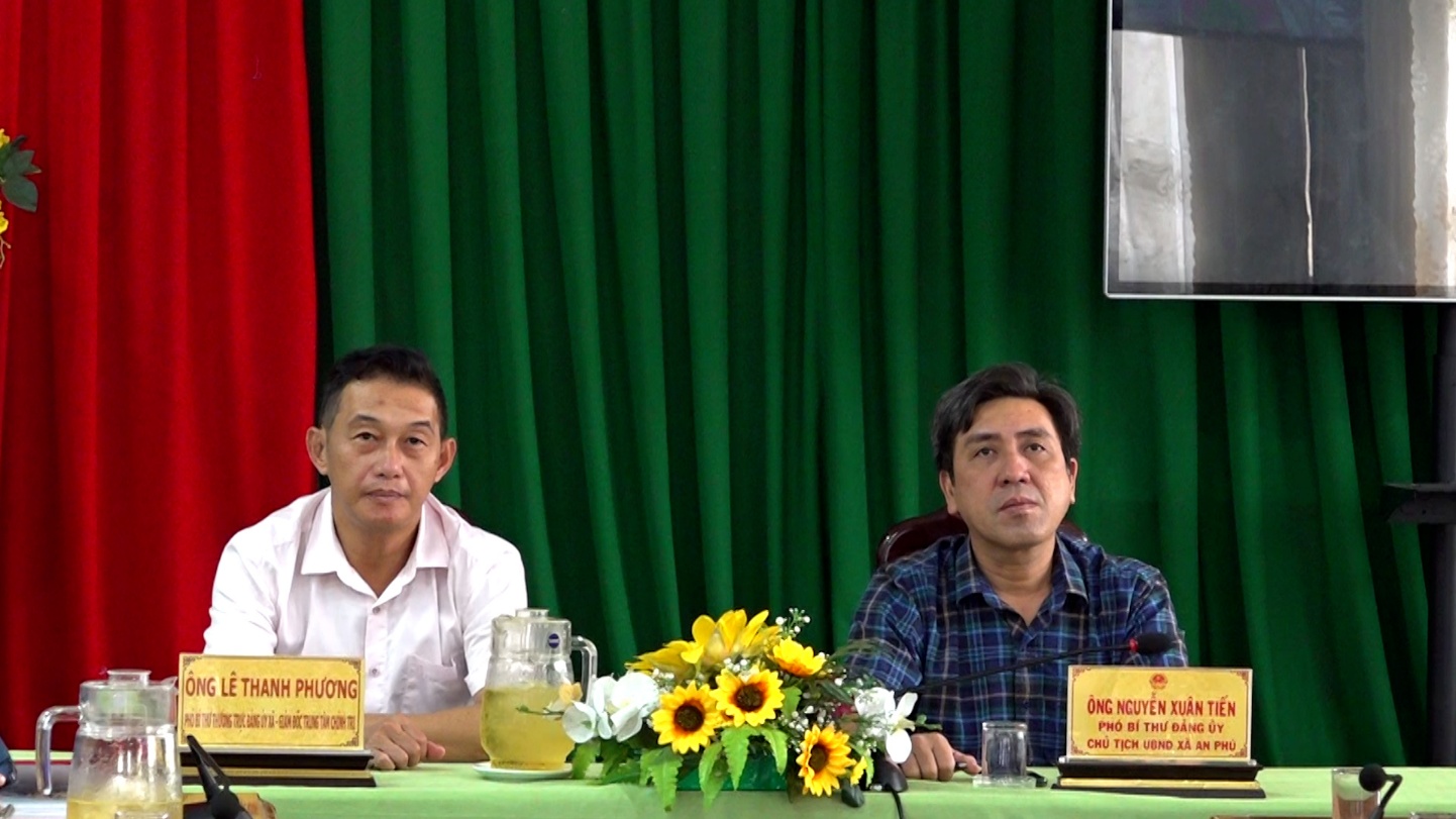 Ông Lê Thanh Phương, Phó Bí thư Đảng ủy, Giám đốc Trung tâm Chính trị xã; ông Nguyễn Xuân Tiến, Phó Bí thư Đảng ủy, Chủ tịch UBND xã An Phú tham dự hội nghị