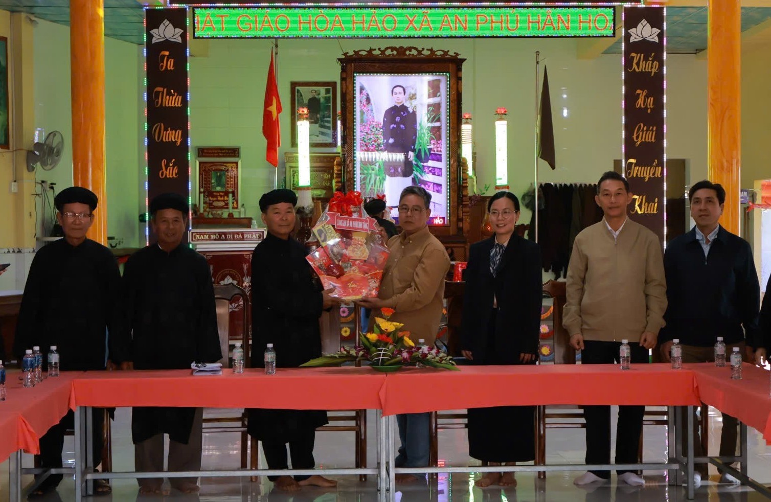 Nhân dịp này,  Đảng ủy, HĐND, UBND, Ủy ban MTTQ Việt Nam xã An Phú đã trao tặng Ban Trị sự Phật giáo Hòa Hảo xã An Phú phần quà chúc mừng, thể hiện sự quan tâm, đoàn kết và gắn bó giữa chính quyền, lực lượng công an với tổ chức tôn giáo trên địa bàn.
