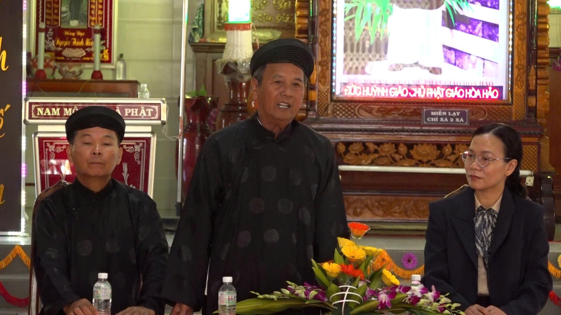 Đại diện Ban Trị sự Phật giáo Hòa Hảo xã An Phú bày tỏ sự cảm ơn trước sự quan tâm của lãnh đạo xã An Phú